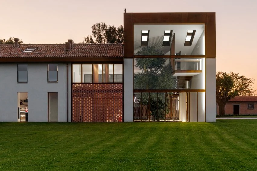 ‘Svjetlost ulazi u prostor kroz rešetkasti zid od opeke, stube od korten čelika i grane drveća. Pritom se miješa sa arhitektonskim detaljima kuće, ostavljajući suptilne sjene’, objašnjava CRA partner Andrea Cassi.
