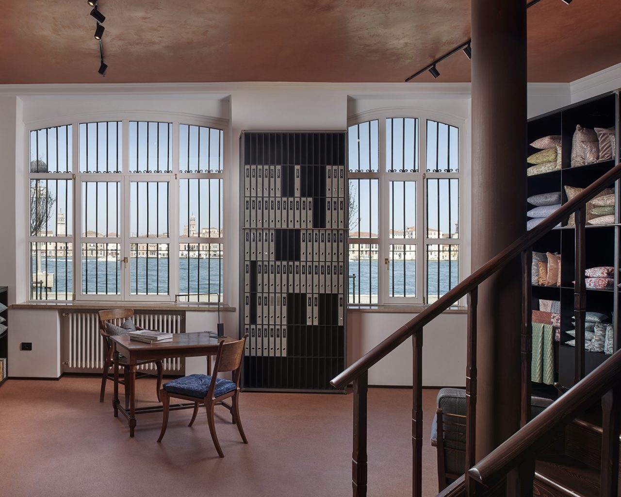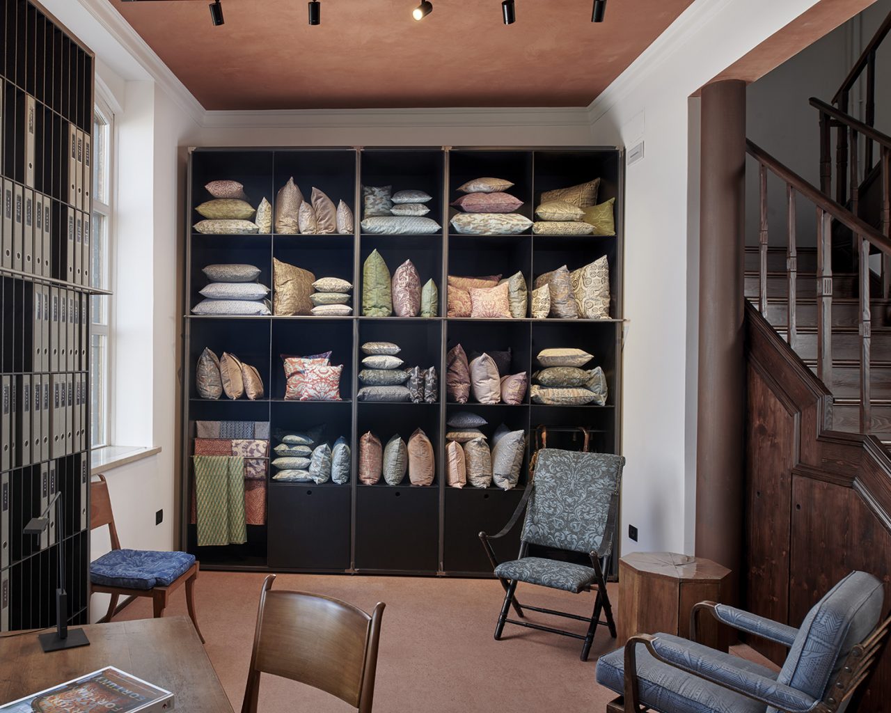 Kreirana je i svojevrsna ‘kuća sjećanja’, gdje je u police po mjeri pohranjen asortiman jastuka izrađen od Fortuny tkanina – poput umjetničke arhive.