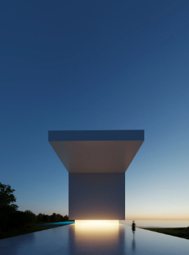 Tako je nastao nacrt nove vile sa geometrijskom formom sfinge – savremena, minimalistička dvospratnica sa ravnim krovom, koju dodatno diferencira sprat visine 15 metara.