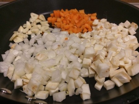 Kao i svaki put, za bazu ću upotrijebiti celer, mrkvu, bijeli i crveni luk.